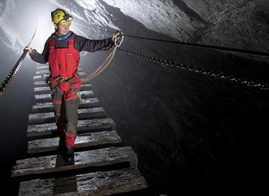 For those wanting to push themselves further, our Hero Xtreme trip (14+) is 6 hours of exploring the largest and deepest slate mine in the world! Test your physical and mental ability whilst navigating through exhilarating traverses, bridges and zip-lines, with a chance to take a break on our Xtreme picnic bench, which hangs off a huge cliff face!