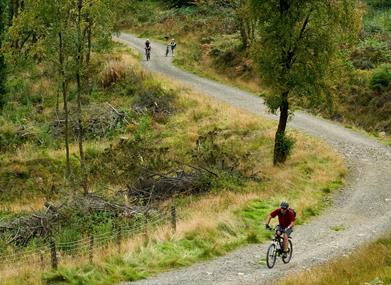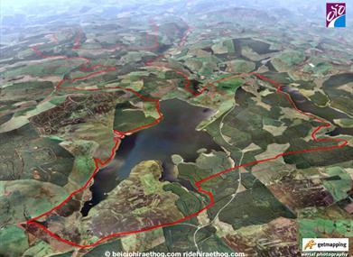 This biking route (49km, climb 943m) runs from the village of Llanfihangel Glyn Myfyr through the Clocaenog Forest up to the Alwen Reservoir and on to Llyn Brenig via forest roads. The route has breath-taking views of Snowdonia and the Clwydian Range. Graded red.