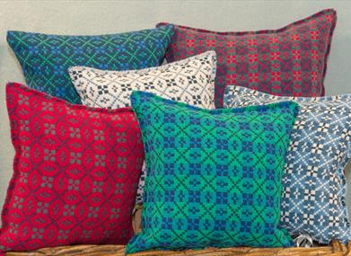 We weave traditional Welsh blankets in the beautiful Conwy Valley, Snowdonia. Our pure wool fabrics are made up into throws, cushion covers, bags and purses. Stockists of pure wool knitwear and sheepskin.
